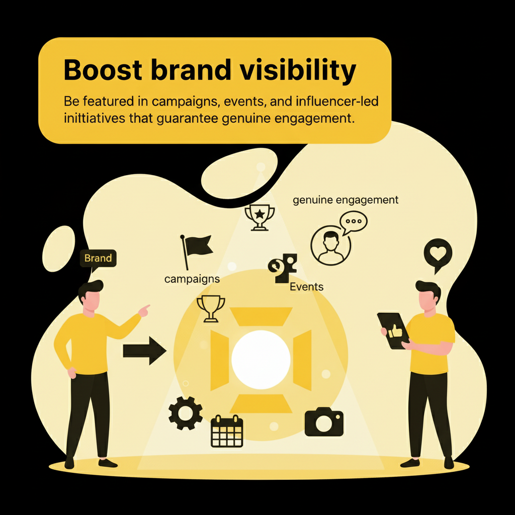 Boost brand visibility. Be featured in campaigns, events, and influencer-led