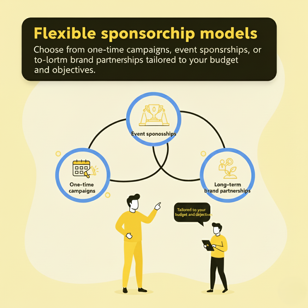 Flexible sponsorship models. Choose from one-time campaigns, event