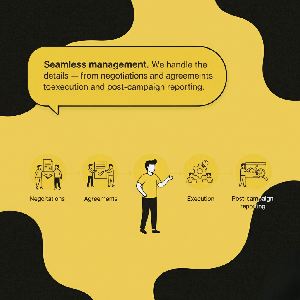 sponsorships, or long-term brand partnerships tailored to your budget and objectives.